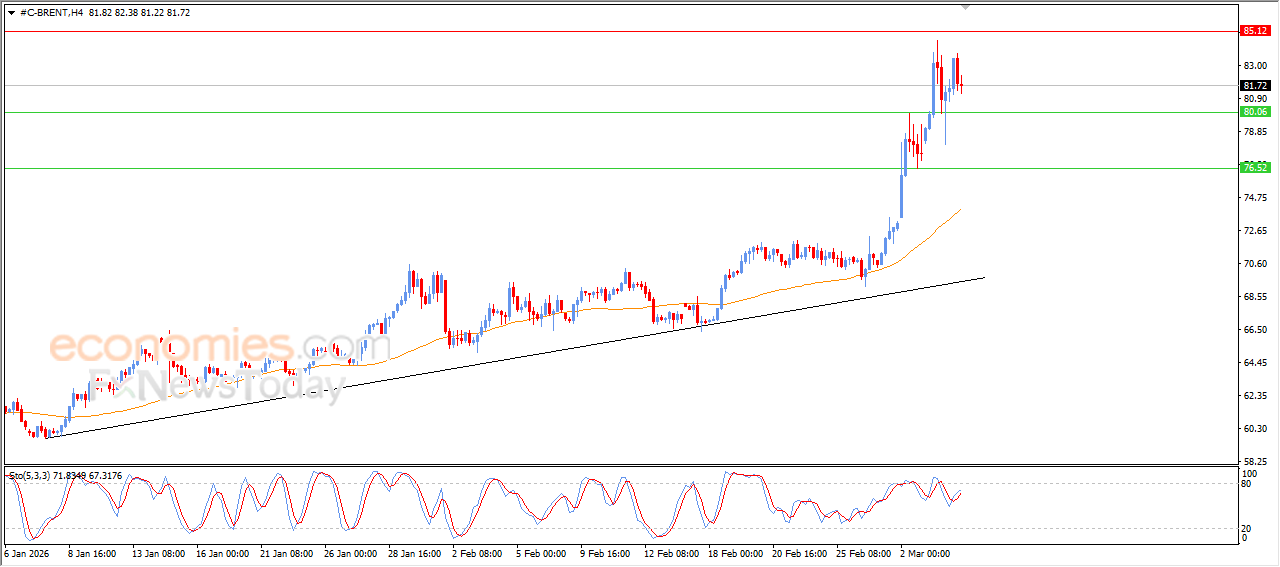 Ceny ropy Brent v posledním intradenním obchodování klesly ve snaze získat býčí momentum, který by jim mohl pomoci k opětovnému růstu, a to uprostřed dominance hlavního býčího trendu v krátkodobém horizontu, s pokračujícím dynamickým tlakem, který představuje obchodování nad EMA50, a také s vytvořením pozitivní divergence na indikátorech relativní síly po dosažení přehnaně přeprodaných úrovní ve srovnání s cenovým pohybem, z nichž se objevily pozitivní signály, což je silný signál k získání nového býčího momentu.