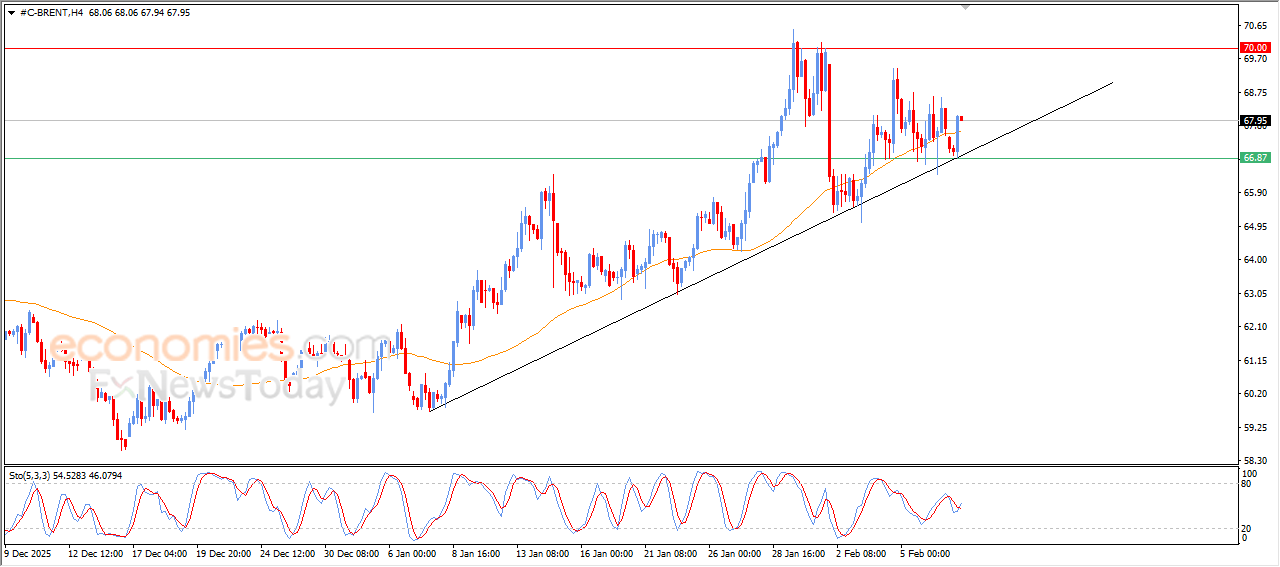 Ceny ropy Brent zaznamenaly v posledním intradenním obchodování silné zisky díky tomu, že se opíraly o podporu EMA50, čímž získaly býčí momentum, které jim pomohlo dosáhnout těchto zisků a překonat negativní tlak EMA50, což je významný krok k oživení a prodloužení intradenních zisků, zejména s objevením se pozitivních signálů z indikátorů relativní síly.