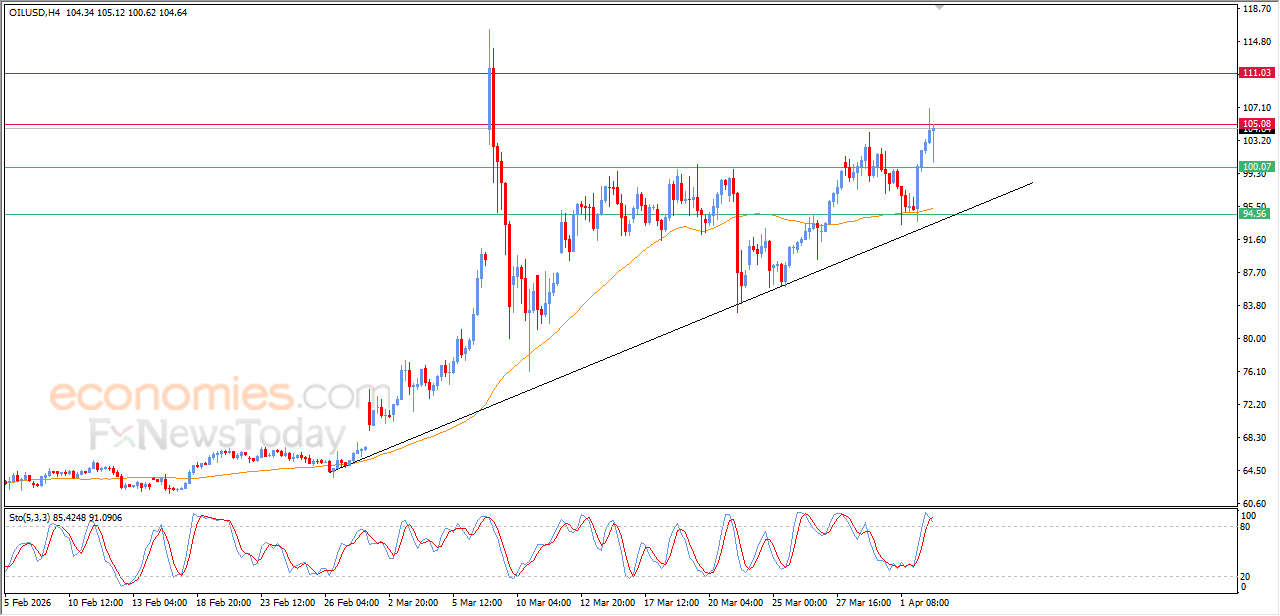 Cena ropy zažívá kolísání obchodování na svých posledních intradenních úrovních poté, co dosáhla našeho očekávaného cíle na odporu 105,00 USD. Odráží se níže ve snaze shromáždit zisky a zbavit se překoupených podmínek na indikátorech relativní síly, které by jí mohly pomoci prolomit tento odpor, a to uprostřed dominance hlavního býčího trendu v krátkodobém horizontu, spolu s podpůrnou trendovou linií pro tuto cestu.