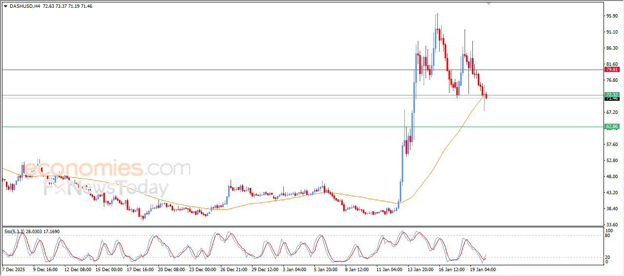Cena akcií Dash (DASHUSD) zaznamenala v posledním intradenním obchodování pokles a prorazila klíčovou úroveň podpory na 72,35 USD. Tento pohyb přišel současně s poklesem pod SMA50, což zesílilo okolní negativní tlak na cenu pod dominancí krátkodobé korekční vlny směrem dolů. Na druhou stranu se však z RSI začaly objevovat pozitivní signály poté, co dosáhl extrémně přeprodaných úrovní, což by mohlo pomoci omezit část nadcházejících ztrát.