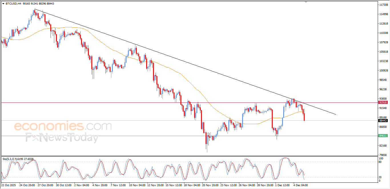 Cena (BTCUSD) během posledního intradenního obchodování klesla, a to uprostřed objevení se negativních signálů na ukazatelích relativní síly, dominance hlavního medvědího trendu v krátkodobém horizontu a obchodování podél trendové linie, čímž překonala podporu EMA50, čímž ukončila jakoukoli možnost jejího zotavení v nadcházejícím období.